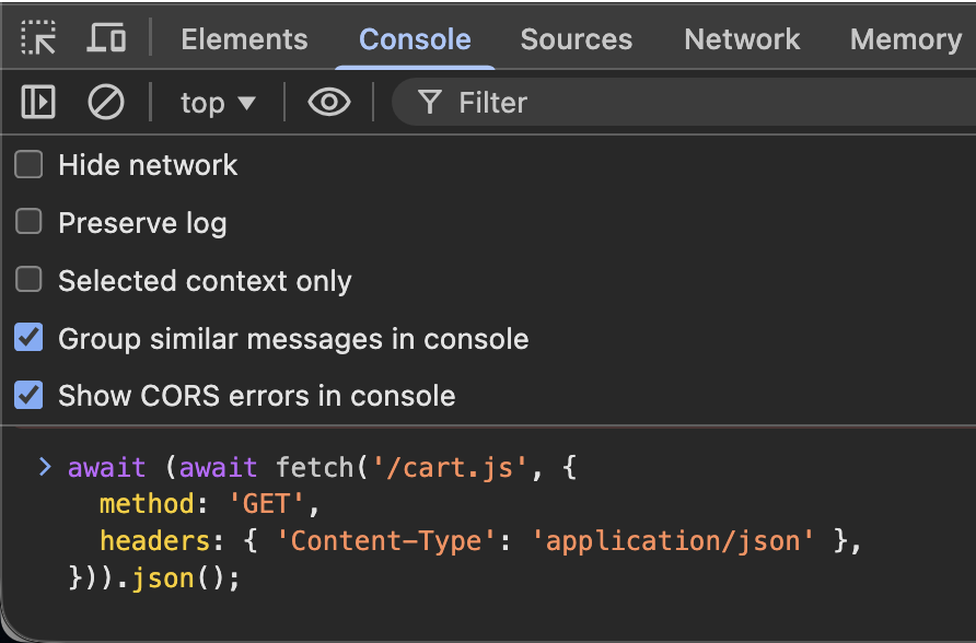 await (await fetch('/cart.js', {