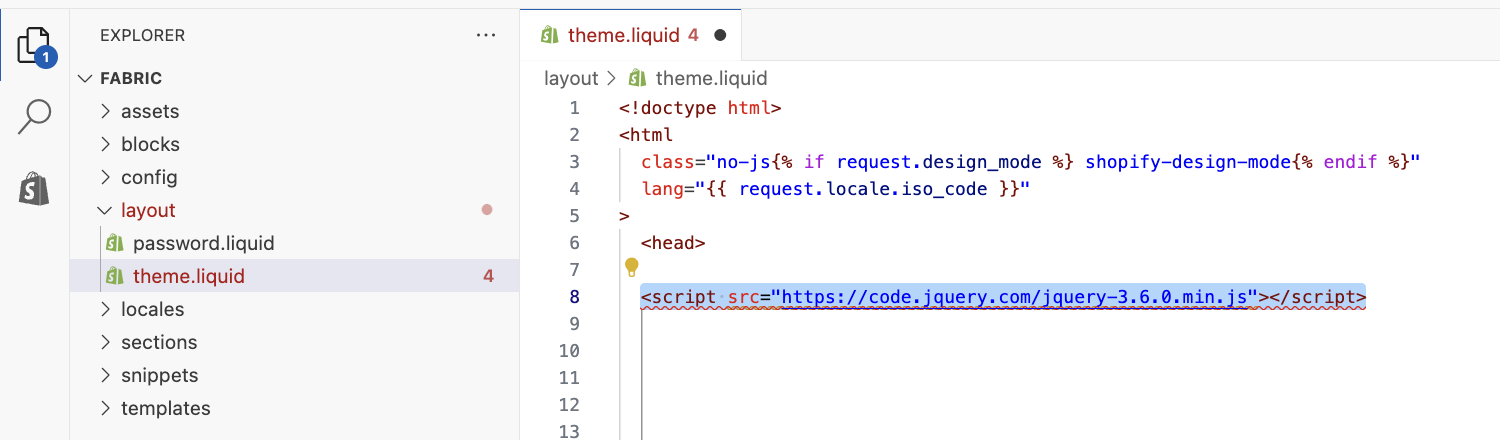 - Go to layout > theme.liquid and paste in the following code after the <head> tag.