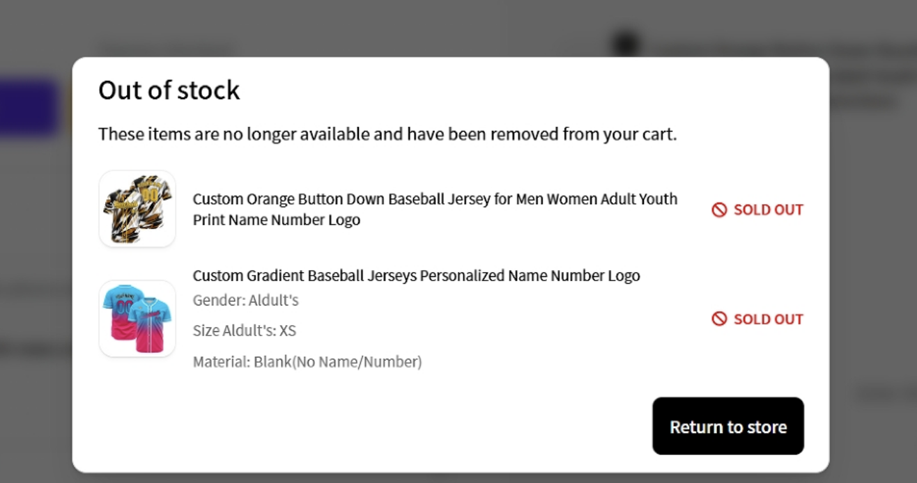 April 22, 2026 We’ve identified a recent change in Shopify’s system that may cause customized products to be incorrectly marked as “unavailable for delivery” or “out of stock” during checkout.